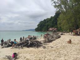Thajec sympaťák nám sdělil plán, pětkrát ho zopakoval a mohli jsme vyjet. Prvně nás čekala návštěva Bamboo Island – krásného ostrůvku s bílým pískem a čirým mořem. Chvíli jsme se plácali ve vodě, pak zase na pláži, udělali pár fotek a už jsme zase seděli na lodi, tentokrát už směr Phi Phi.